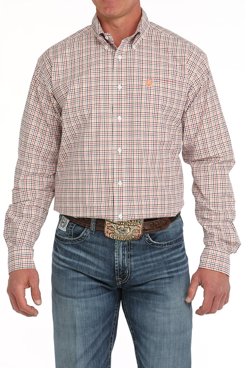 This classic white checkered plaid cotton plain weave is all you need for a fresh, timeless look. Designed with an open left front pocket, embroidered logo, and white buttons, this shirt pairs with CINCH blue jeans and cowboy boots for a day at the office or a trip to the ranch.