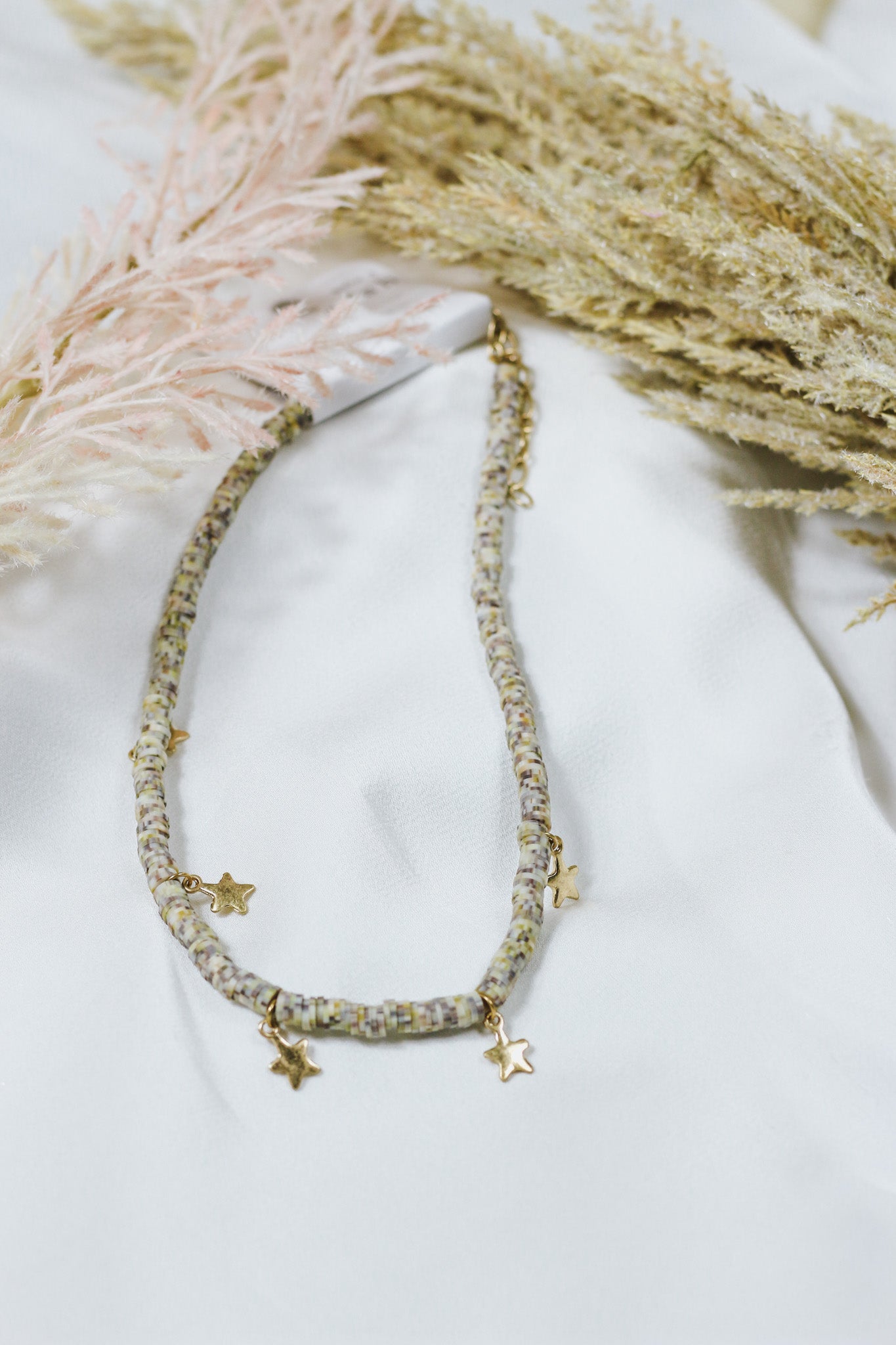 Natural Cream Beaded Star Necklace