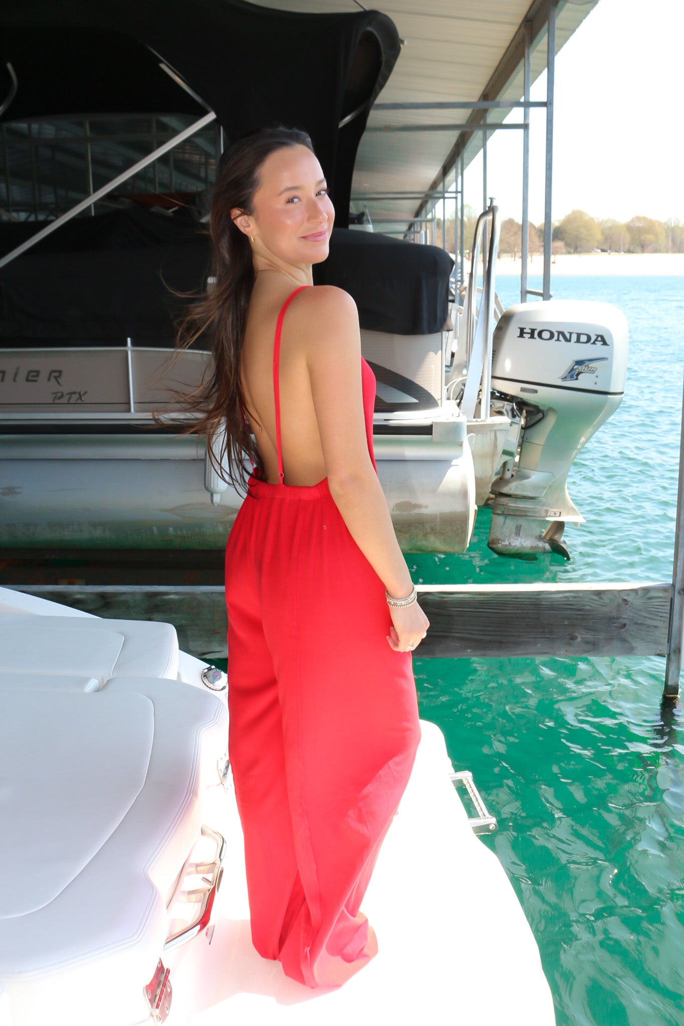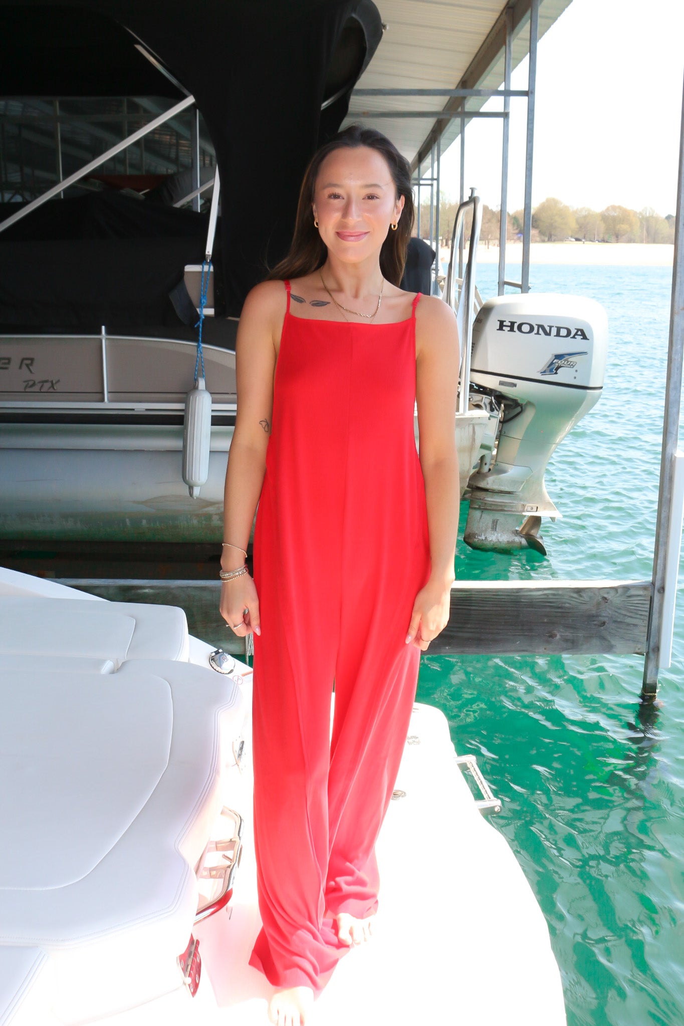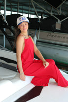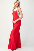 Patriotic Duties Tomato Red Jumpsuit combines bold style with everyday comfort. This knit jumpsuit features an eye-catching tomato red hue and a striking open back design that makes a statement. Adjustable straps ensure a customized fit for all body types, while the soft knit fabric keeps you comfortable throughout the day. Perfect for casual outings, weekend adventures, or making an impression at social gatherings. The versatile design pairs easily with sneakers or heels depending on your mood.