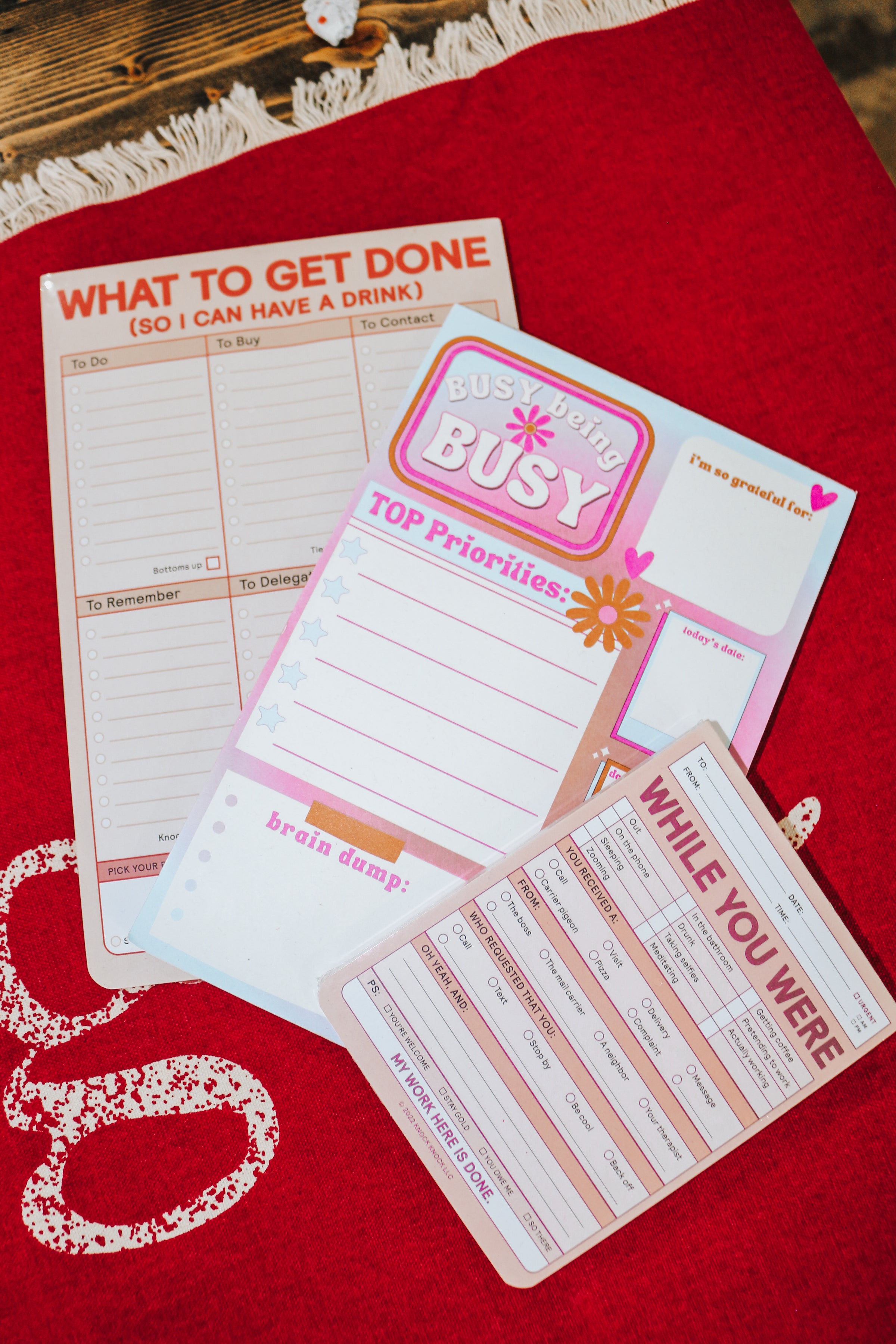 Make your to-do lists merry and bright with this pink notepad! It's the perfect gift for anyone needing a bit of extra motivation to get things done — Busy Being Busy!