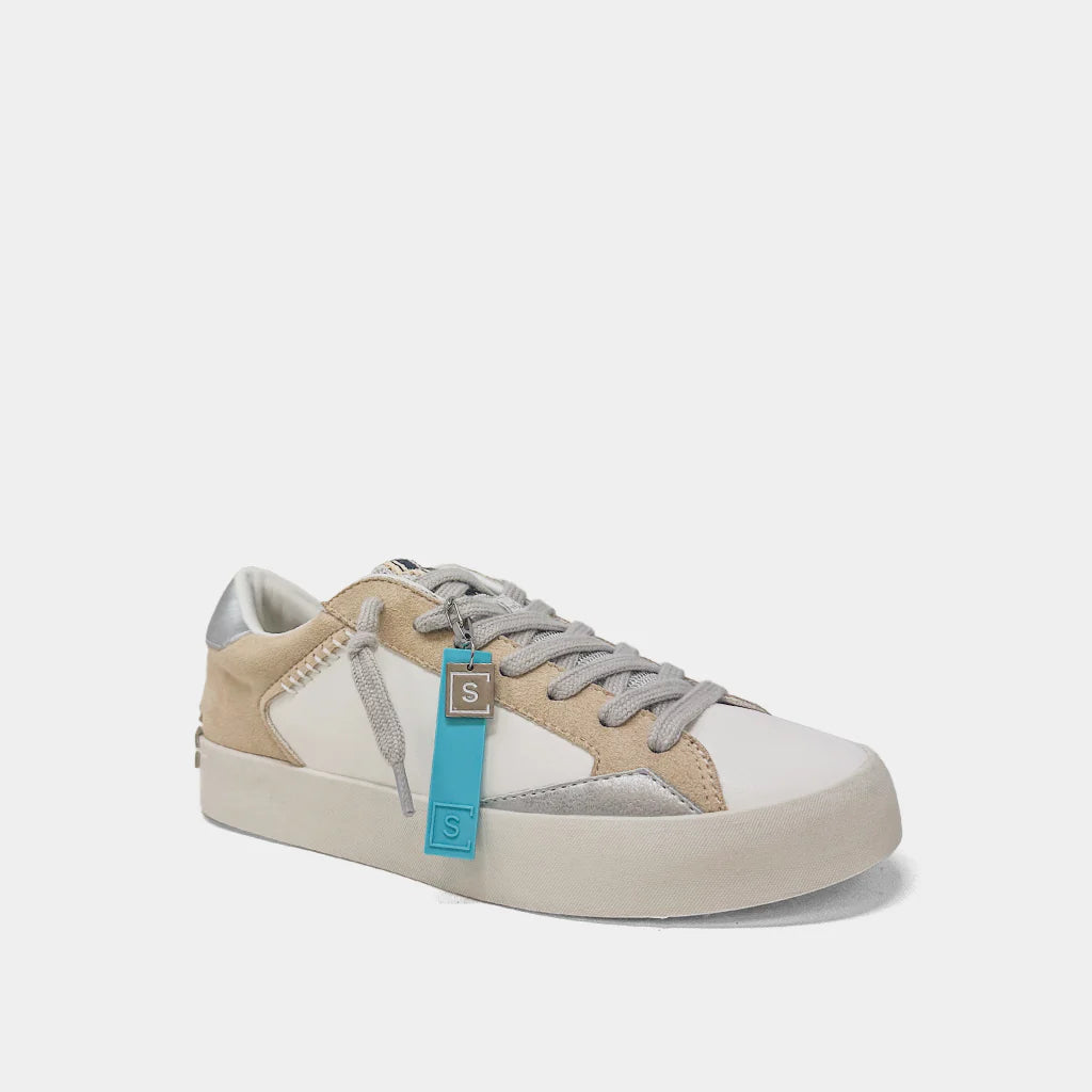 Presenting our newest release, the RUBY - a sleek and modern low-top sneaker. The upper is crafted from textiles and supple faux leather, with added artificial suede. A minimalist design is enhanced with contemporary stitching details, while distressed patches give this pair a unique flair. The rubber soles provide long-lasting comfort and support, making them perfect for all-day wear. Pair them with trousers or a midi skirt for a stylish look that's sure to make a statement. These sneakers embody timeless charm and exceptional craftsmanship that won't disappoint.