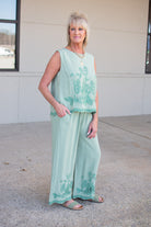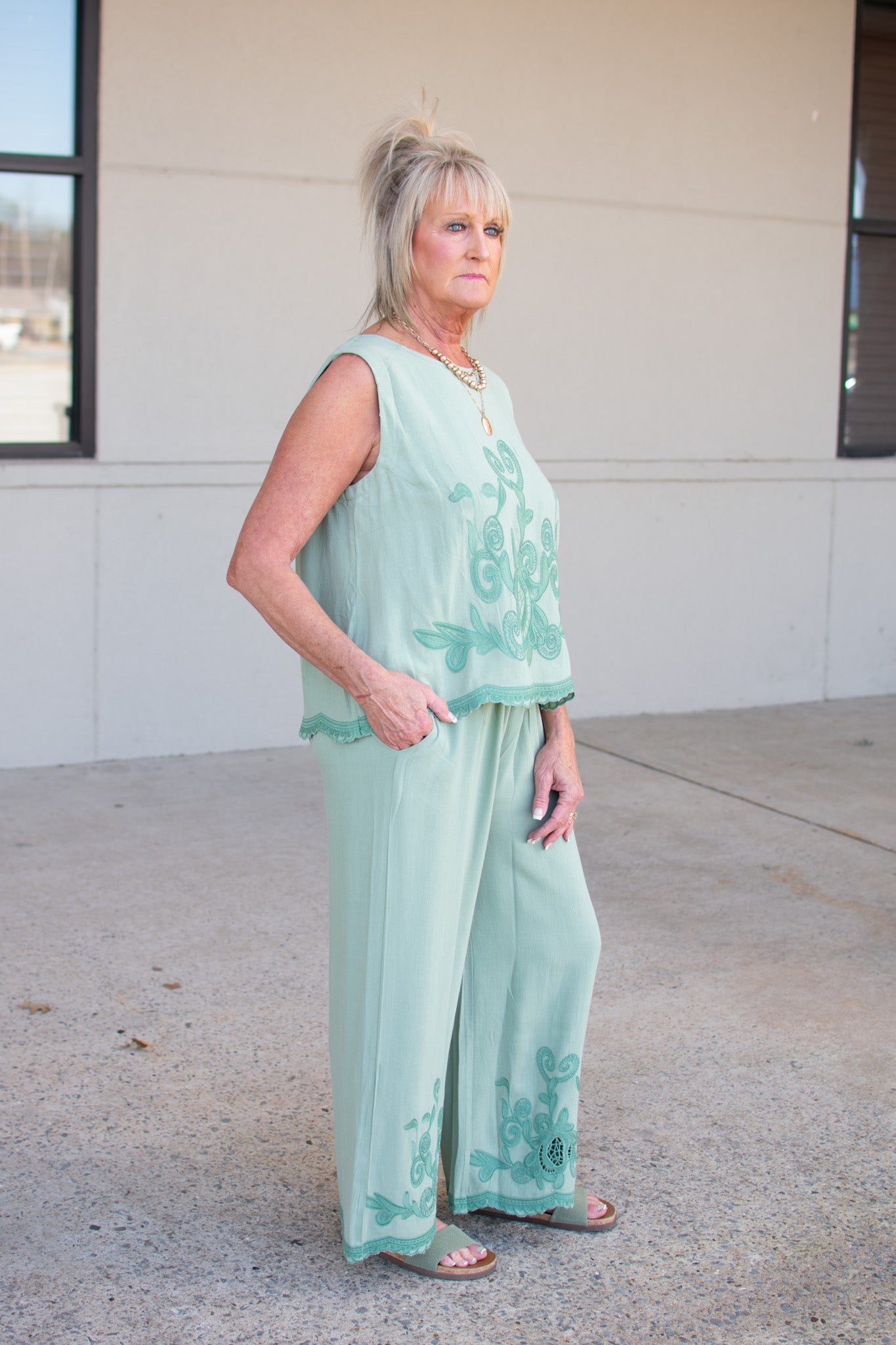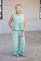 Get ready to "set the stage" with this sage green top! Perfect for any occasion, this top features a playful matching pants sold separately (but totally worth it). So go ahead, make a statement and show off your unique style with this top!