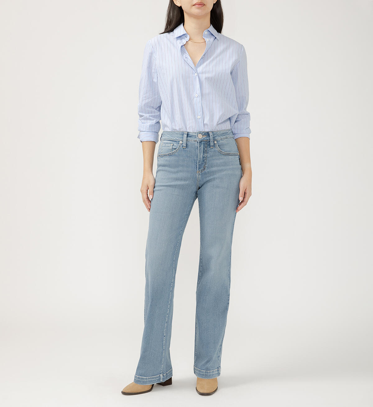 Searching for the perfect curvy fit jeans? Meet Avery—designed to flatter those with a smaller waist and fuller hips. These women’s high rise jeans provide extra coverage, while a contoured waistband prevents gapping. Finished with ease in the hip and thigh for curve-hugging perfection.