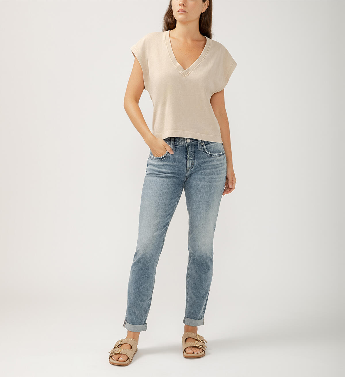 Silver Boyfriend Mid Rise Slim Leg Jeans