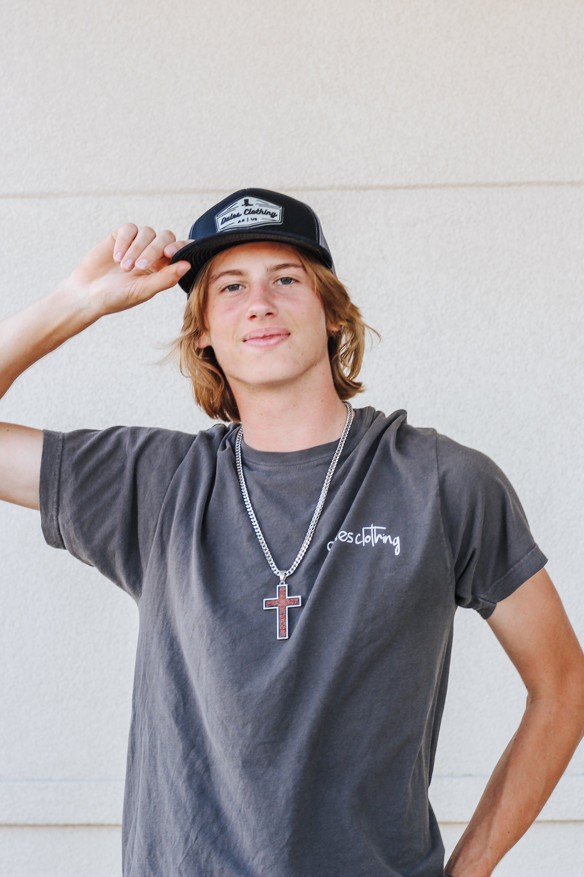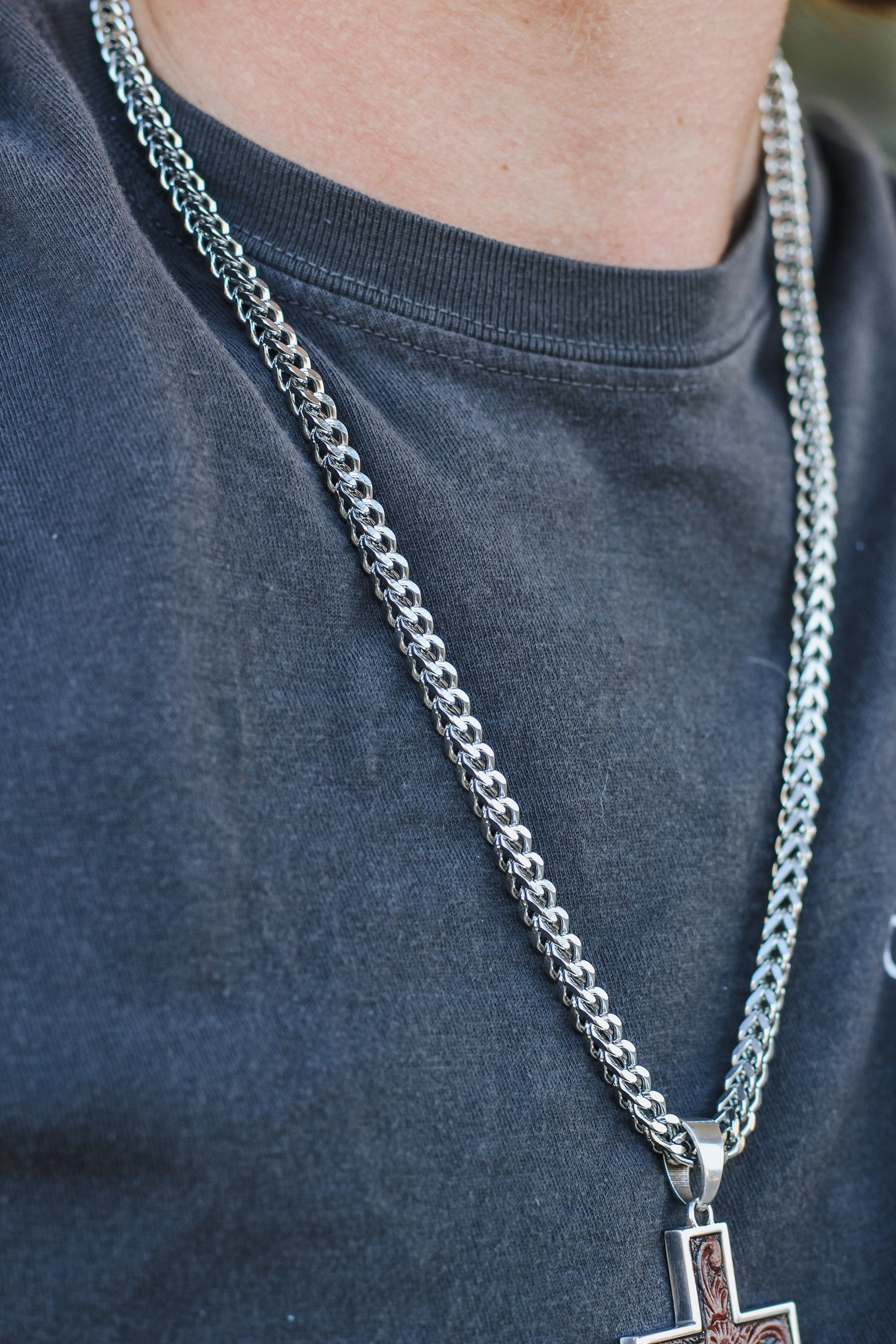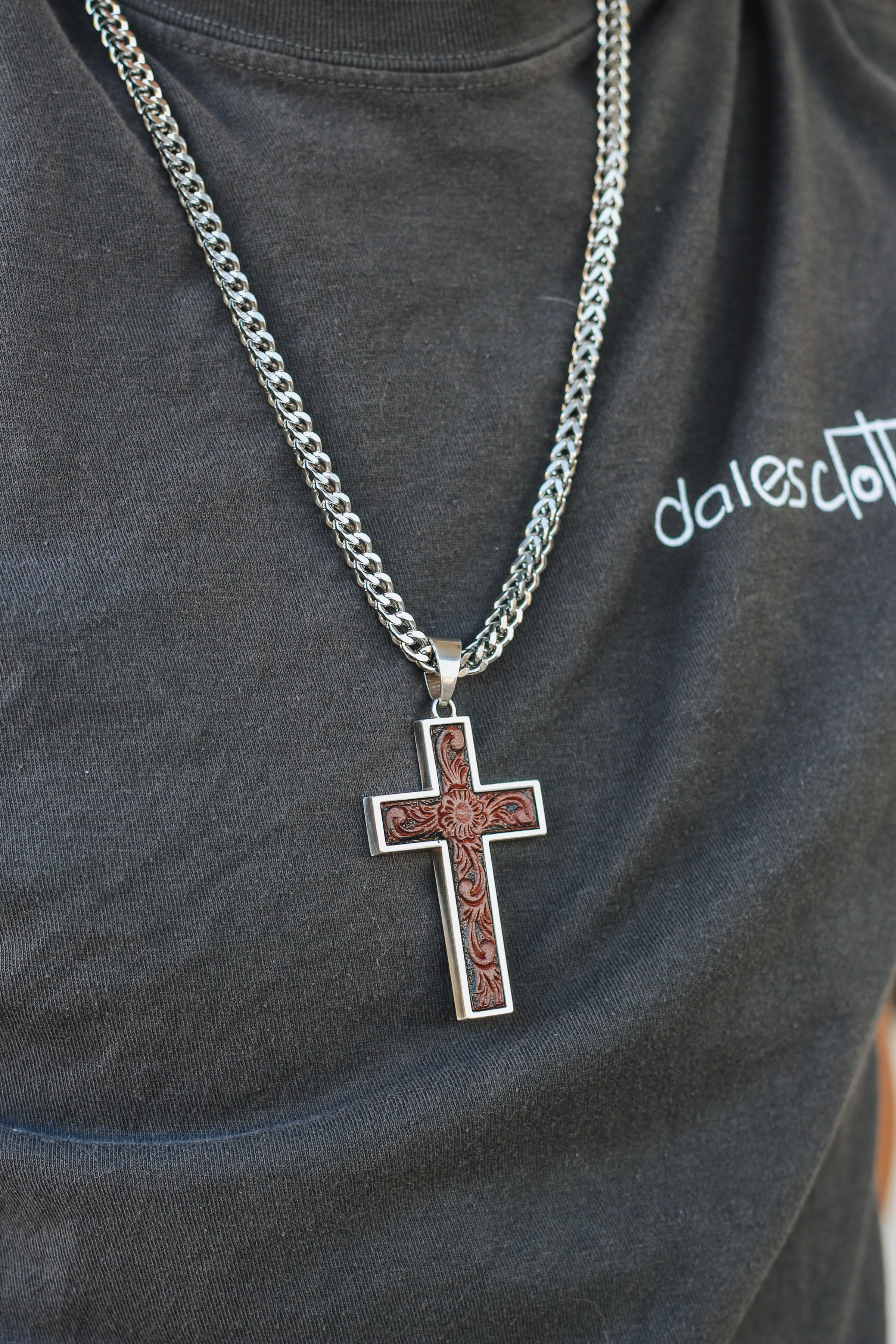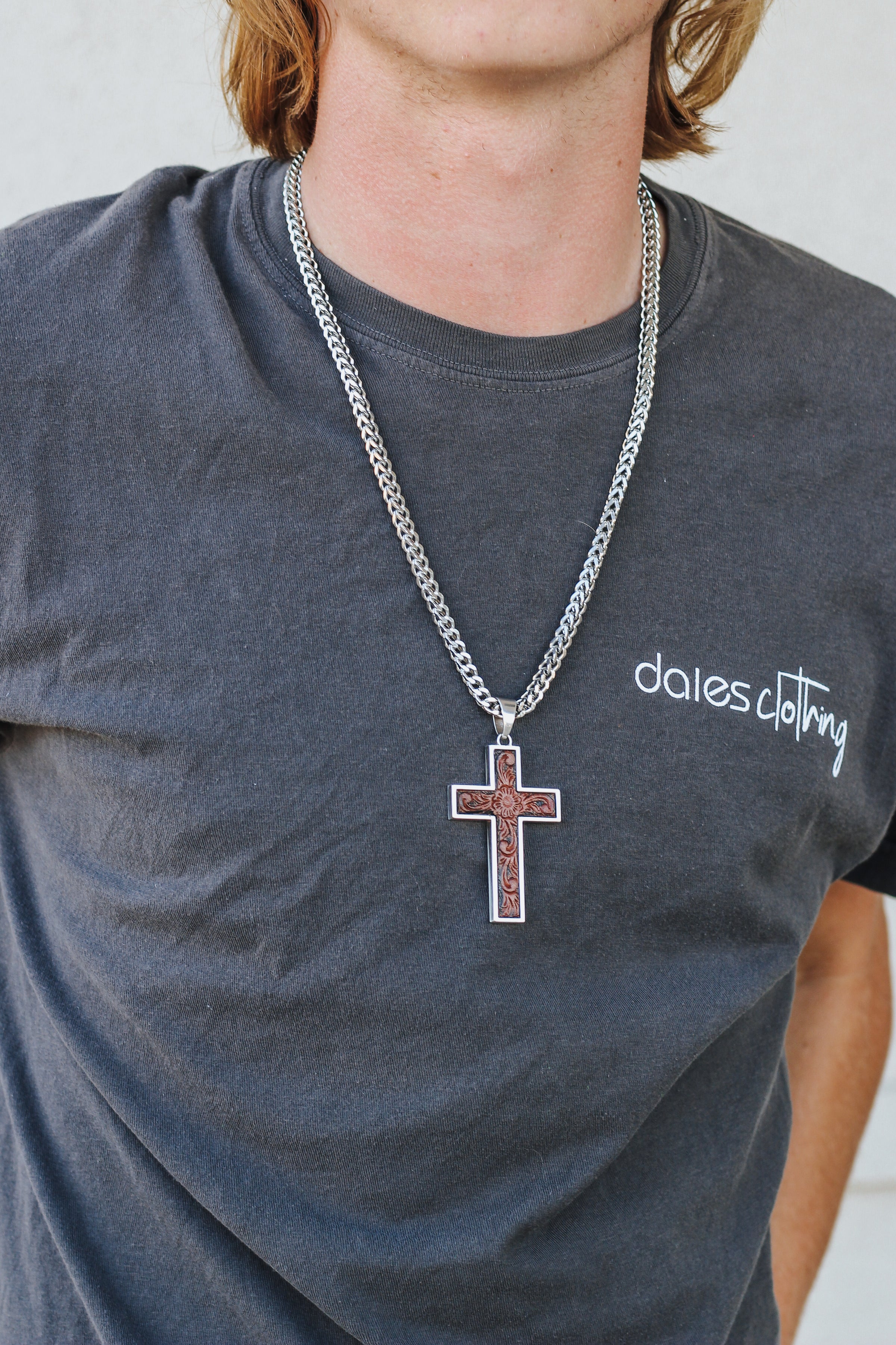 Silver Chain Brown Cross Mens Necklace
