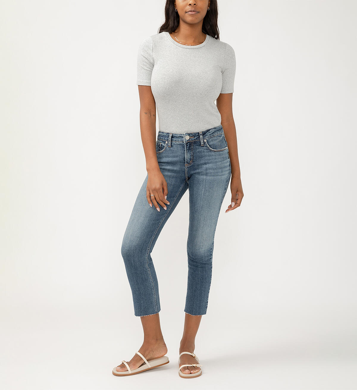 Silver Elyse Mid Rise Straight Leg Ankle Jeans