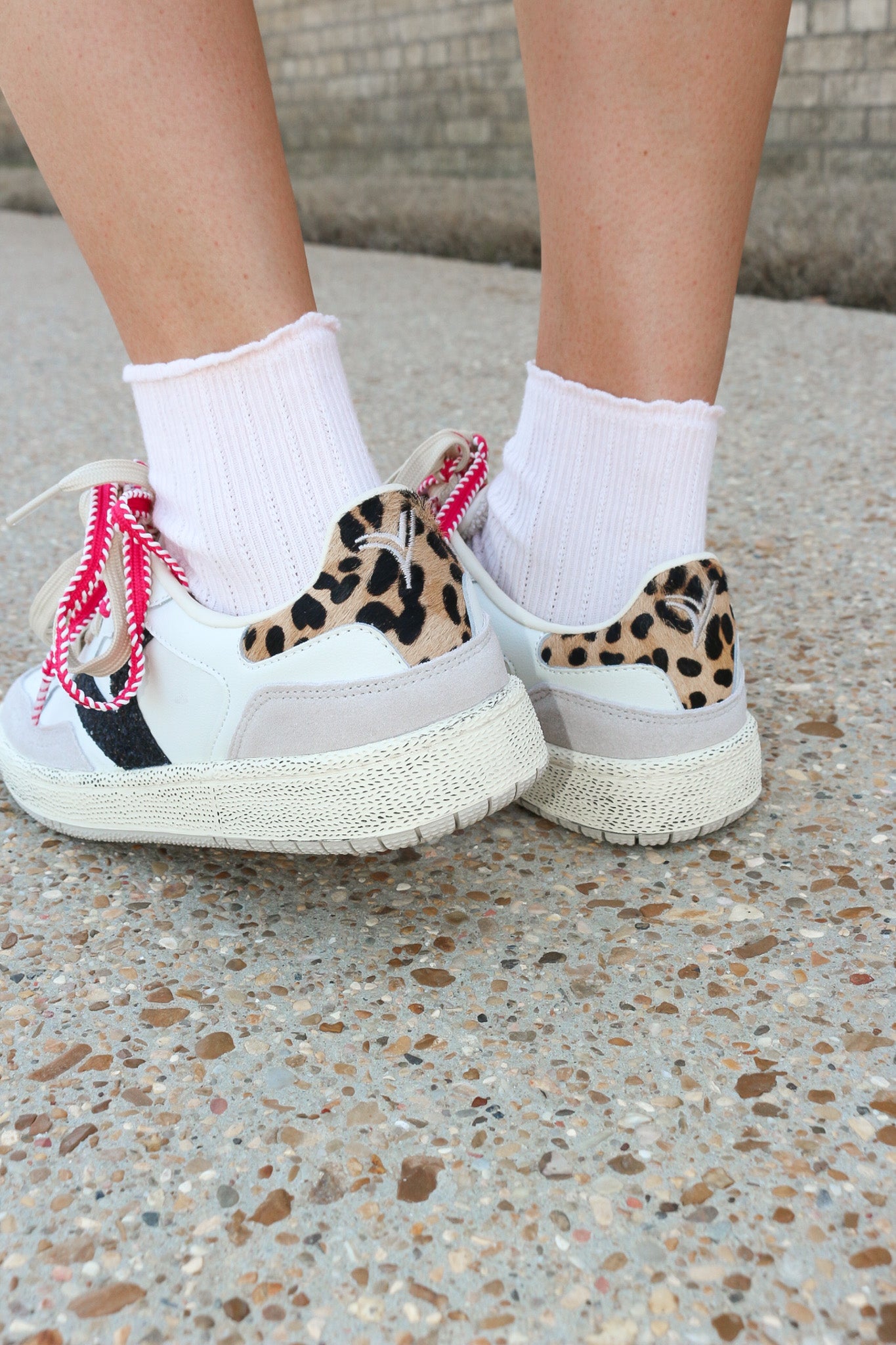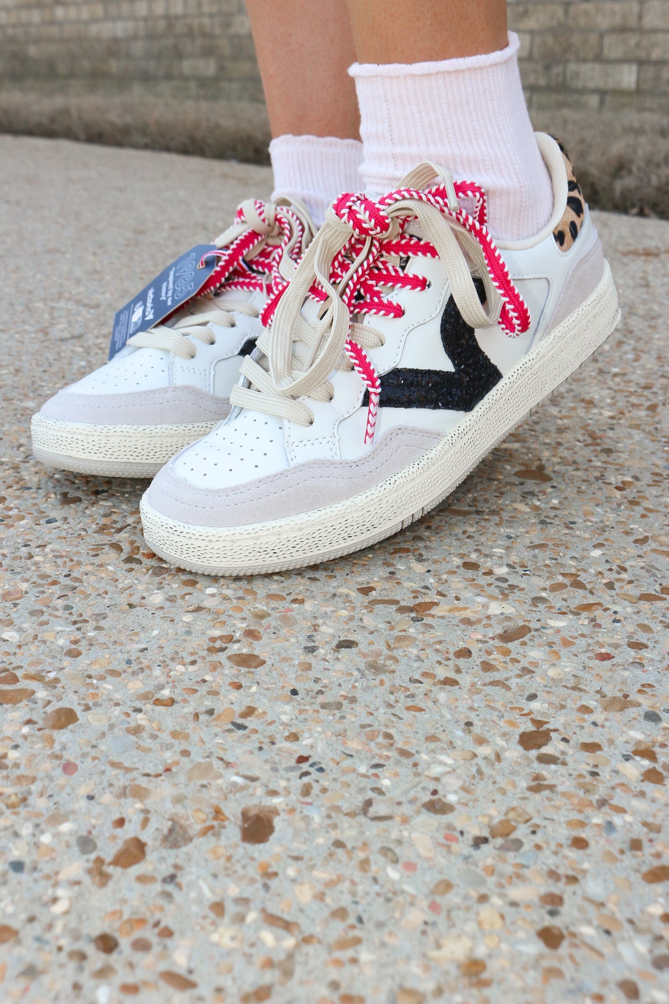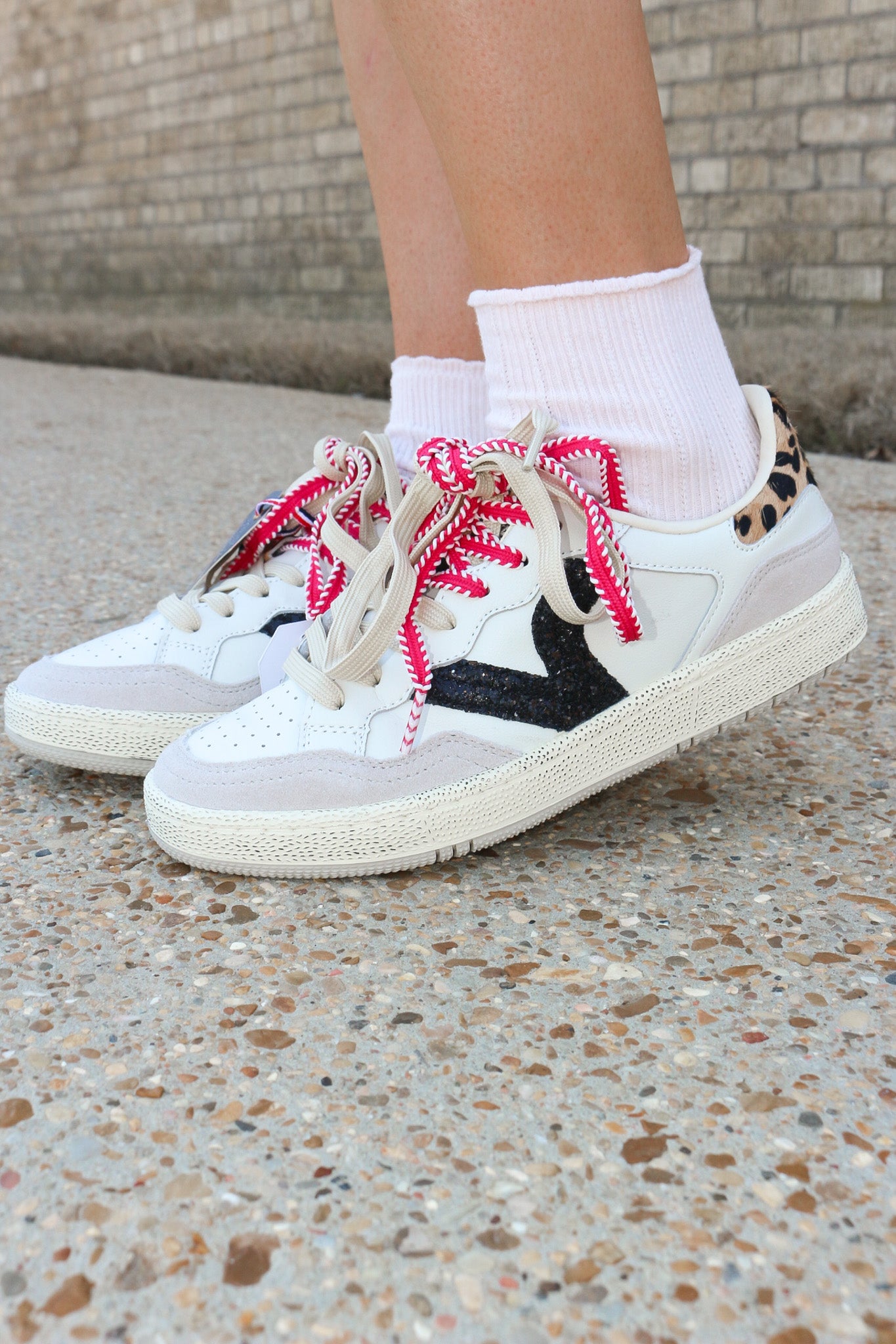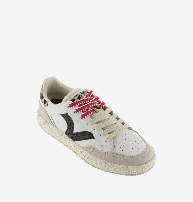 Women's trainers made from leather with PU panels. Retro victoria V on the side and heel panel in a mix of glitter and animal print finishes. Fastened with two-tone laces: one pair tone-on-tone and another in color with white embroidery. Breathable microfibre lining. Two-tone rubber sole with a rugged, aged finish. Also includes an ergonomic insole that adapts to the shape of the foot for an added feeling of comfort.