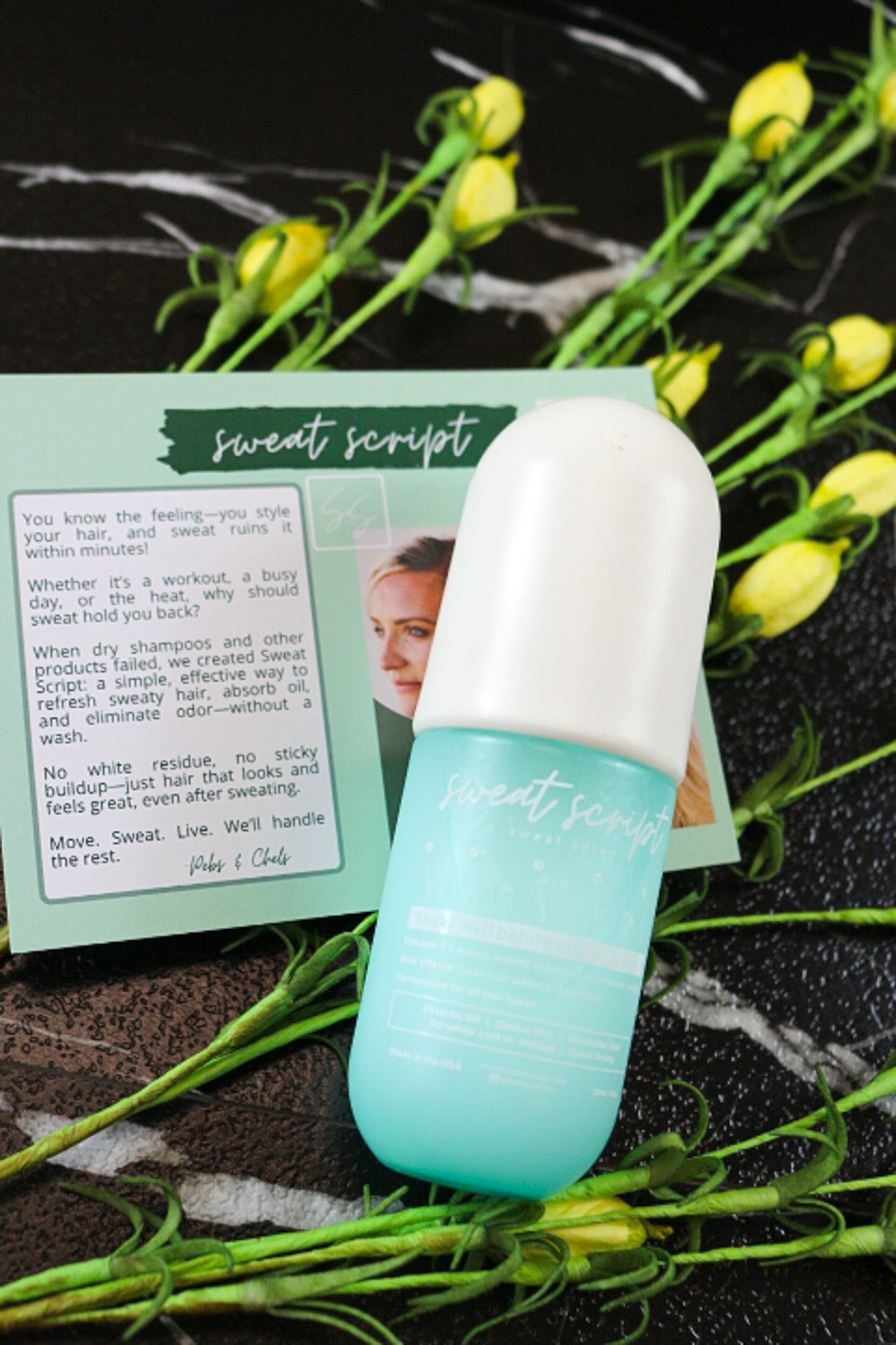 💧 **Sweat Script is designed for sweat—not just oil—giving your hair a true post-workout refresh! The perfect solution to sweaty hair, without the shower! Sweat script absorbs oil, eliminates odor, cleans & dries your hair in no time. It's the perfect script your hair needs after any sweaty adventure. With Sweat Script on-hand, you can kiss rushed showers and sweaty, limp hair goodbye with a simple spritz (or two). You can accomplish it all in under 3 minutes.