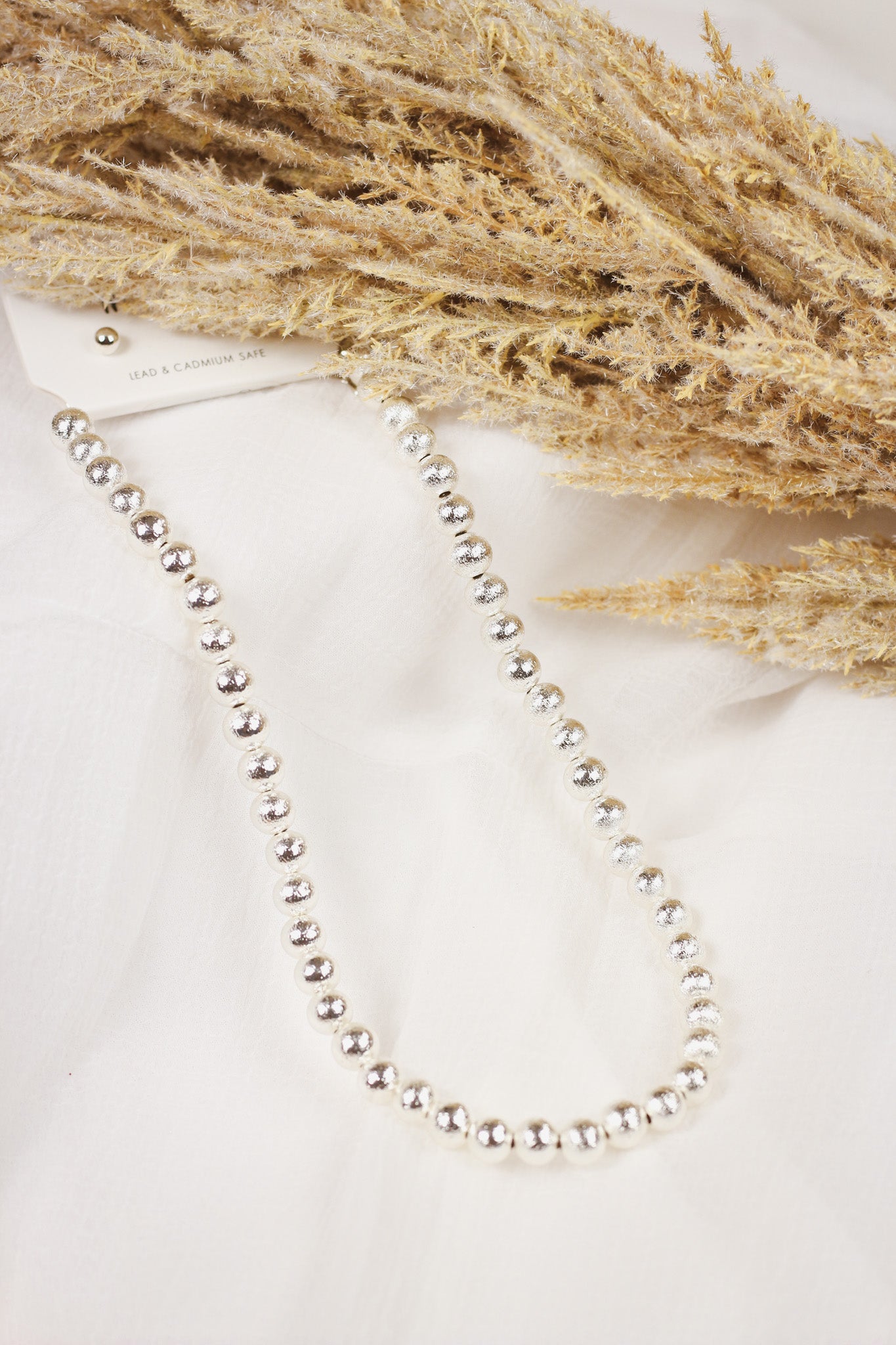 Textured Silver Beaded 8MM 16"-18" Necklace