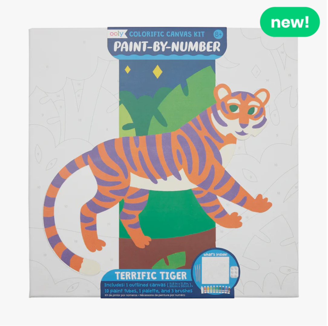 Paint your way to a masterpiece with OOLY’s Colorific Paint by Number Kit. This pawfect set includes 10 paint colors, one palette, and three brushes. The design features a Terrific Tiger, happy in his jungle habitat. This paint by numbers kit is a great gift for newbie and experienced artists alike!