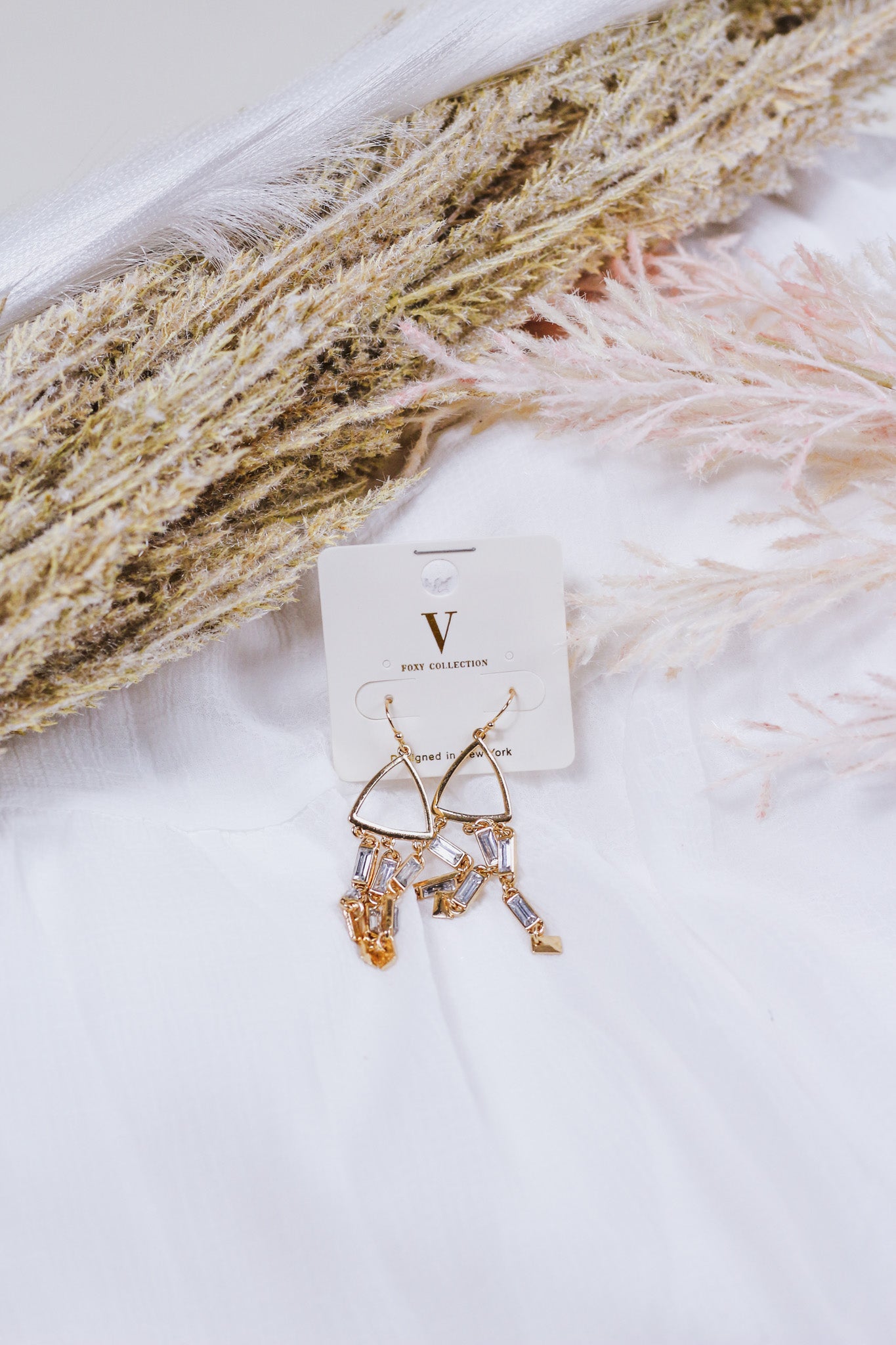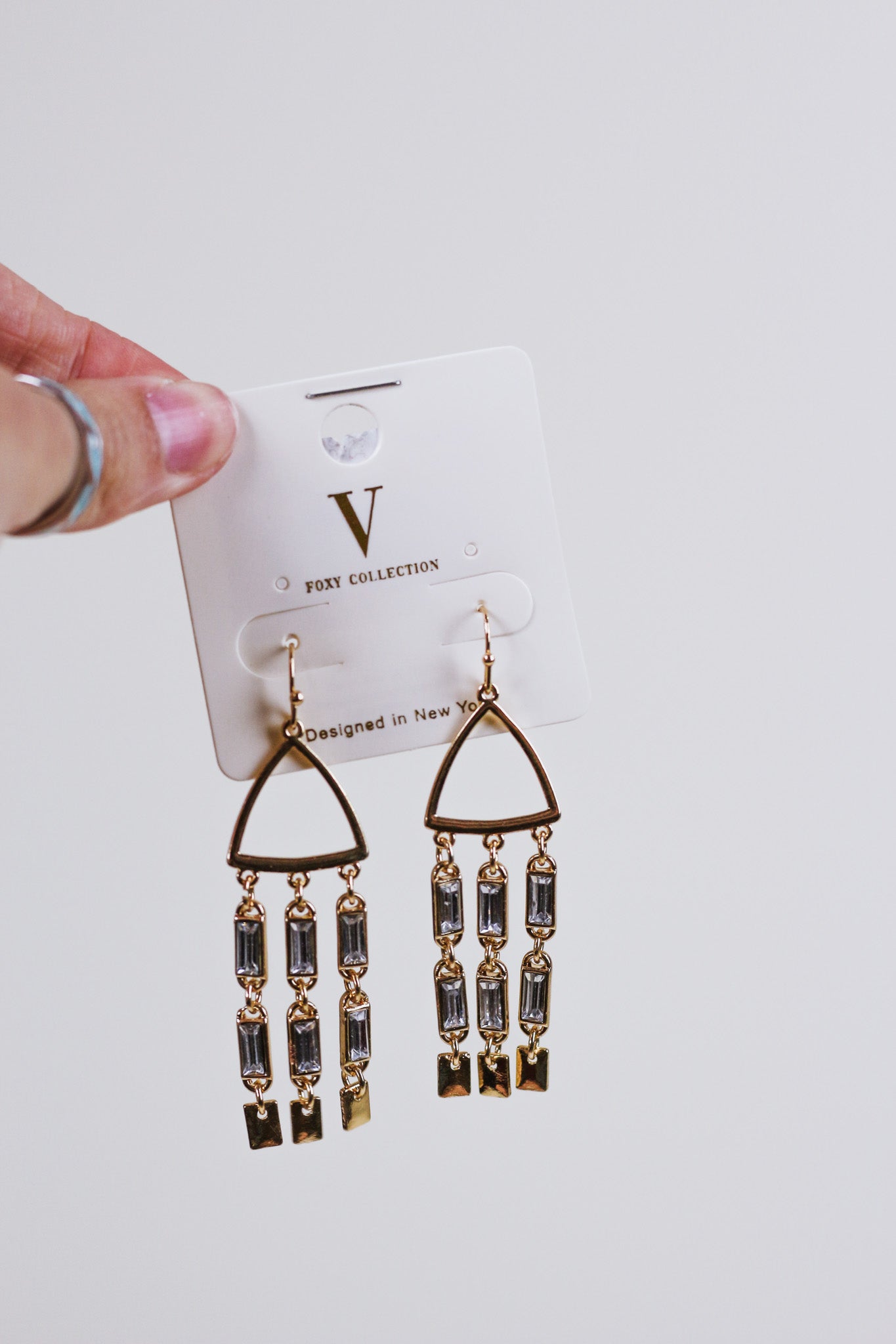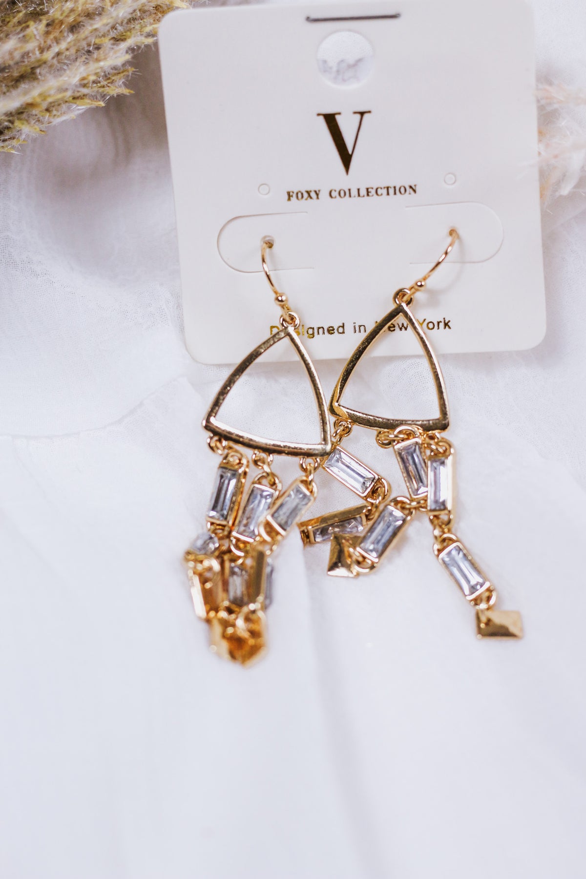 Triangle Geometric Clear Stone Drop 2" Earrings
