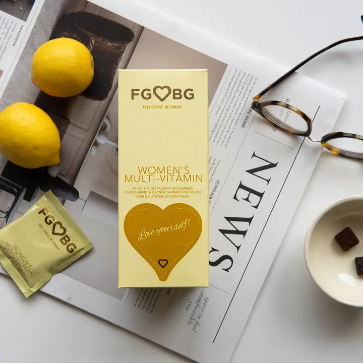 FGBG™ has created an all-in-one women's multivitamin formula perfect for those trying to stay healthy! We’ve combined B Complex vitamins with Zinc to help boost energy levels, brain function, cell metabolism, and the immune system.* Every gummy is loaded with healthy doses of Vitamins A, C, & E to maintain healthy hair and skin.* We’ve also added Vitamin D to help with bone development and keeping them strong.* Our delightful gummies are made from fruits, not animal gelatin, making them 100% vegetarian friendly and cruelty-free. FGBG™ prepackages our vitamin gummies into daily dose packets, making them easy to take any time, anywhere!
