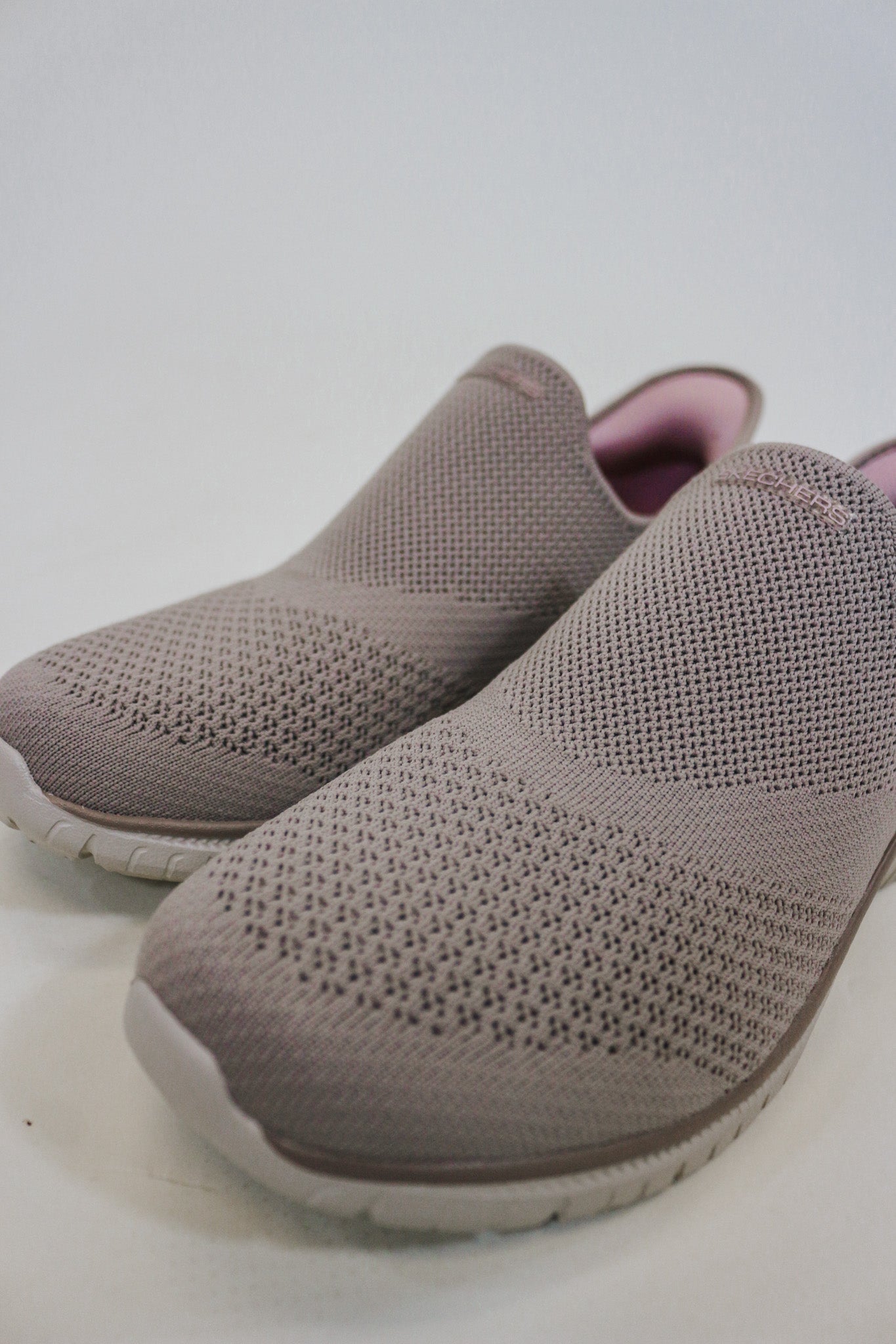 Step into effortless style and comfort with Skechers Hands Free Slip-ins®: Virtue - Sleek. Designed with our exclusive Heel Pillow™, this hands-free slip-on style features a breathable Stretch Fit® engineered knit upper with a cushioned Skechers Air-Cooled Memory Foam® insole.