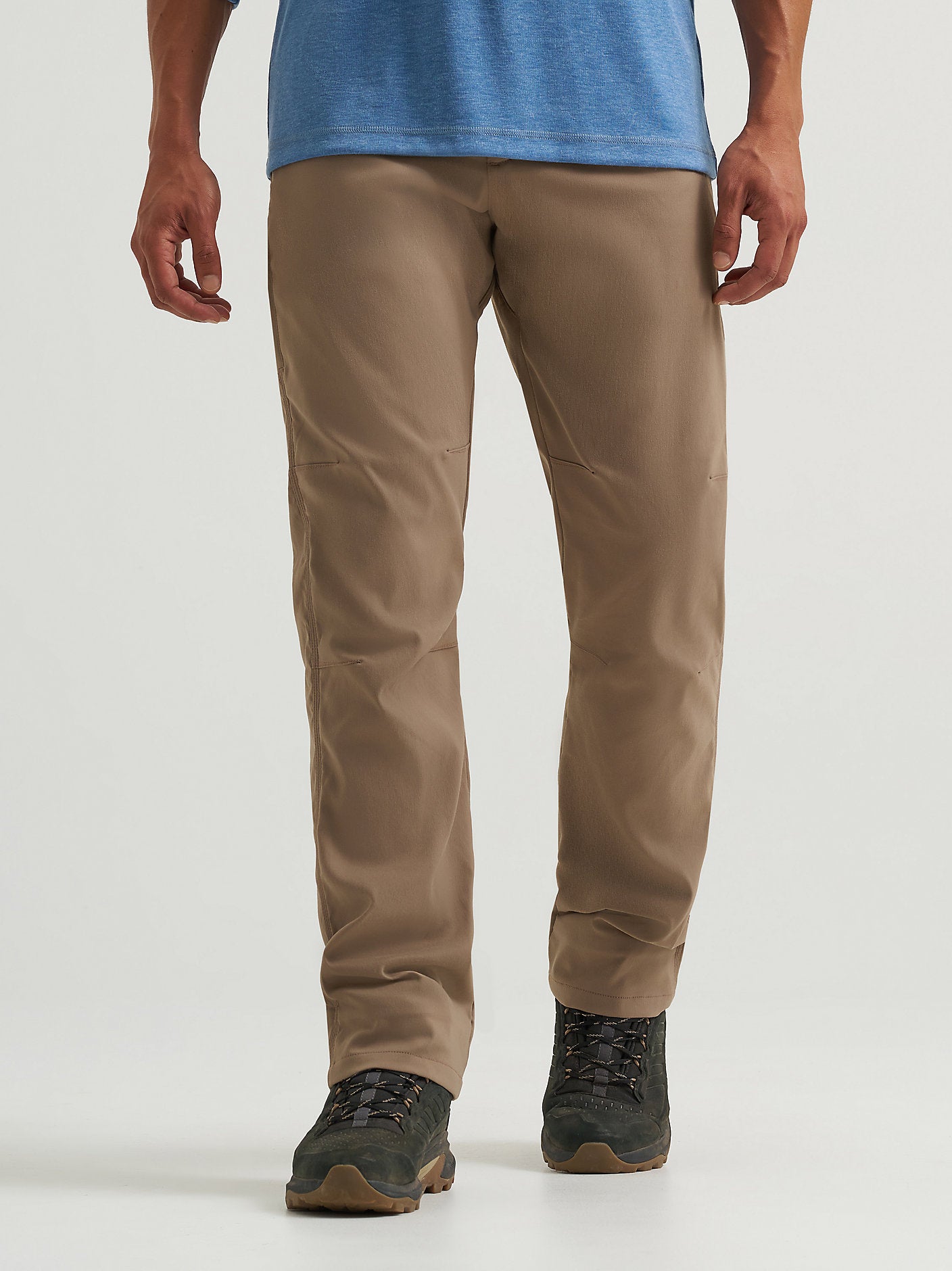 Wrangler ATG™ Men's Windward Utility Pant. Each new season brings new adventures, and the Wrangler ATG™ Men's Windward Utility Pant is ready when you are. It’s made of a water-repellent fabric with built-in UPF 40+ to protect you from the sun’s harmful rays and a fleece lining for added warmth when the days start cooling down. You’ll have plenty of space to stash your essentials between the scoop hand pockets, coin pocket, knife pocket, secure zip pocket, and drop-in back pockets. These utility pants feature a straight fit that looks great on and off the grid as well as articulated knees for maximum mobility.